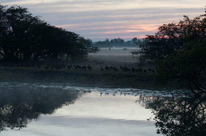 Am Dienstag gab es dann die Tagwache um 5:50, um rechtzeitig zu Yellow Water Bootstour anzutreten. Es hat sich wirklich gelohnt! Wir haben einen wunderschönen Sonnenaufgang –den ersten überhaupt – in den Feuchtgebieten gesehen und die erwachende Tierwelt, viele verschiedene Vogelarten, Pferde und Krokodile erlebt. Hier sagen die Bilder mehr als tausend Worte.